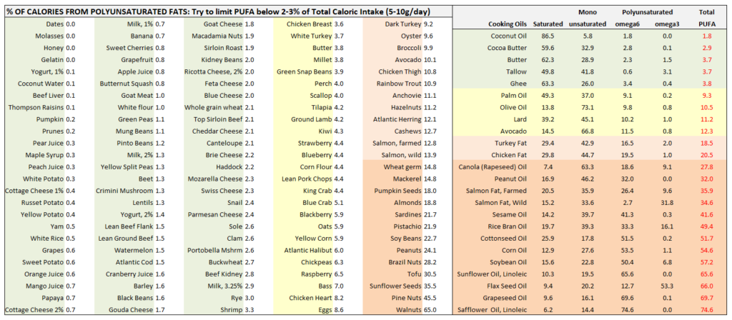 Горните слики ни покажуваат листа на количество на PUFAs(Полинезаситени масни киселини)