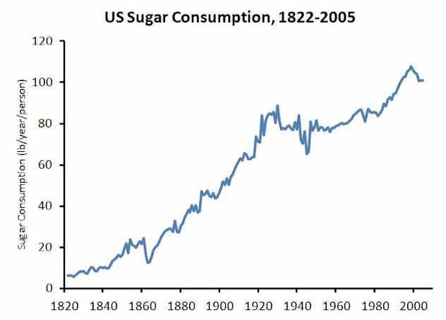 Всушност проблемот не е внесот на шекер туку неговата количина и според графикот може да го забележиме трендот како се зголемува.